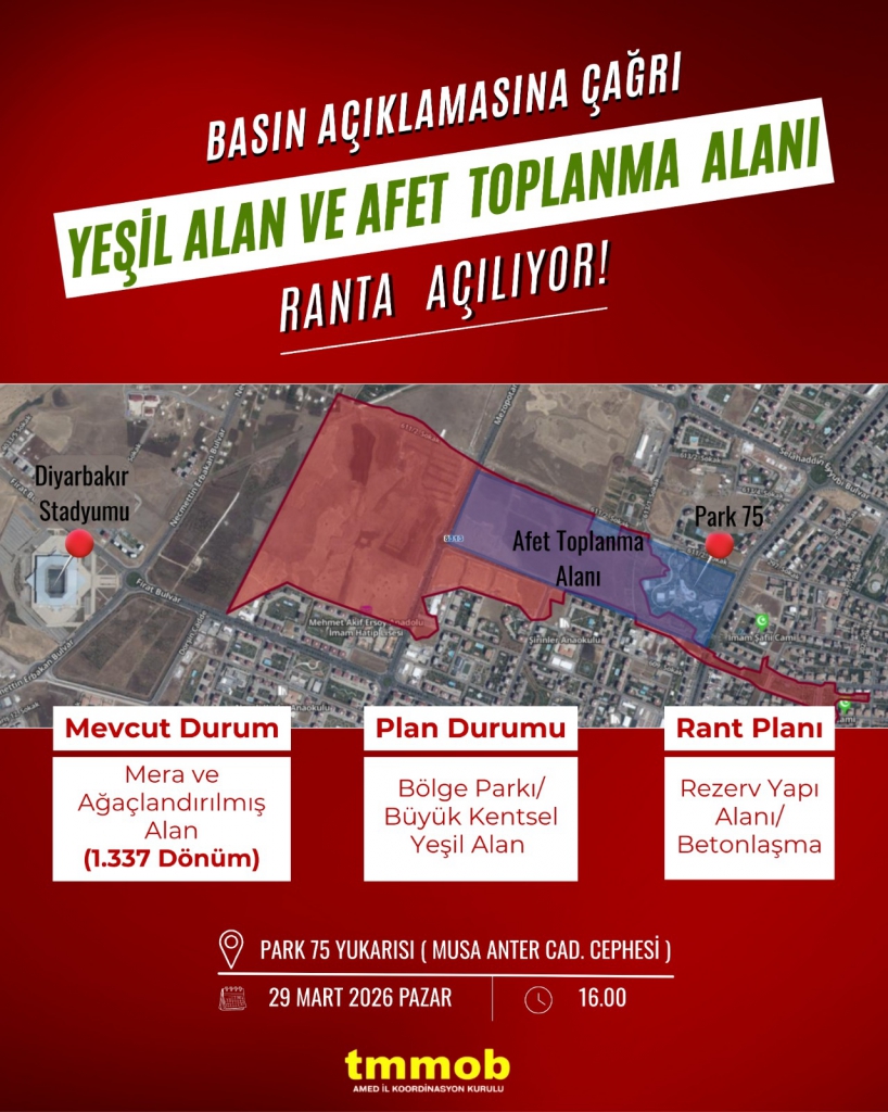 Bugün burada toplanmamızın nedeni, kentin ciğerleri niteliğindeki ve aynı zamanda bir kısmı Afet Toplanma Alanı olan; Mahabad Bulvarı ile Talaytepe arasındaki Mera vasıflı 1337 dönümlük alanın "Rezerv Yapı Alanı" adı altında betona ve ranta kurban edilmek istenmesidir. Bu kabul edilemez kararı neden reddediyoruz?